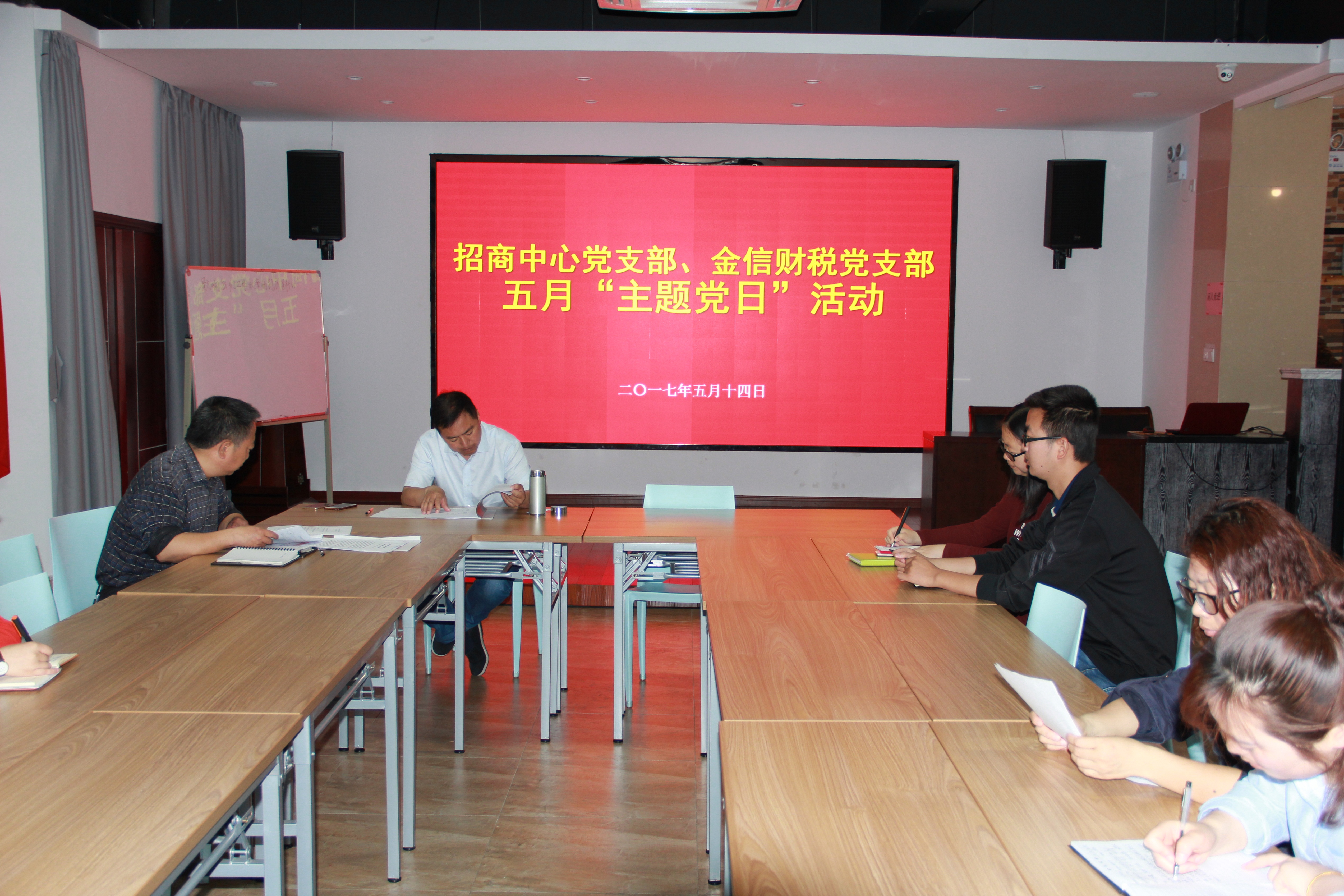 2017年5月14日是全縣的“主題黨日”,招商中心、金信財稅2個支部聯(lián)合舉辦了活動。當(dāng)天,2個支部合計14名黨員、建黨對象、積極分子在招商中心大樓一樓眾創(chuàng)空間召開會議,會議學(xué)習(xí)和傳達(dá)了《關(guān)于在基層黨組織標(biāo)準(zhǔn)化建設(shè)中開展“主題黨日”活動的通知》、習(xí)近平系列講話《扎實推動經(jīng)濟(jì)社會持續(xù)健康發(fā)展 以優(yōu)異成績迎接黨的十九大勝利召開》等一系列文件精神。