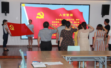 全體黨員再一次舉起右手,在鮮紅的黨旗下莊嚴(yán)宣誓:“我自愿加入中國共產(chǎn)黨,擁護(hù)黨的綱領(lǐng),履行黨員義務(wù)……”。重溫入黨誓詞。
