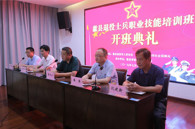 7月19日,歙縣2019年度第二期退役士兵職業(yè)技能培訓(xùn)期班開班儀式在我青創(chuàng)職業(yè)培訓(xùn)學(xué)校隆重舉行。縣退役軍人事務(wù)局局長(zhǎng)金自立、副局長(zhǎng)潘煉、張青峰等領(lǐng)導(dǎo),青創(chuàng)職業(yè)培訓(xùn)學(xué)校、康順駕校負(fù)責(zé)人出席開班儀式并發(fā)表講話。