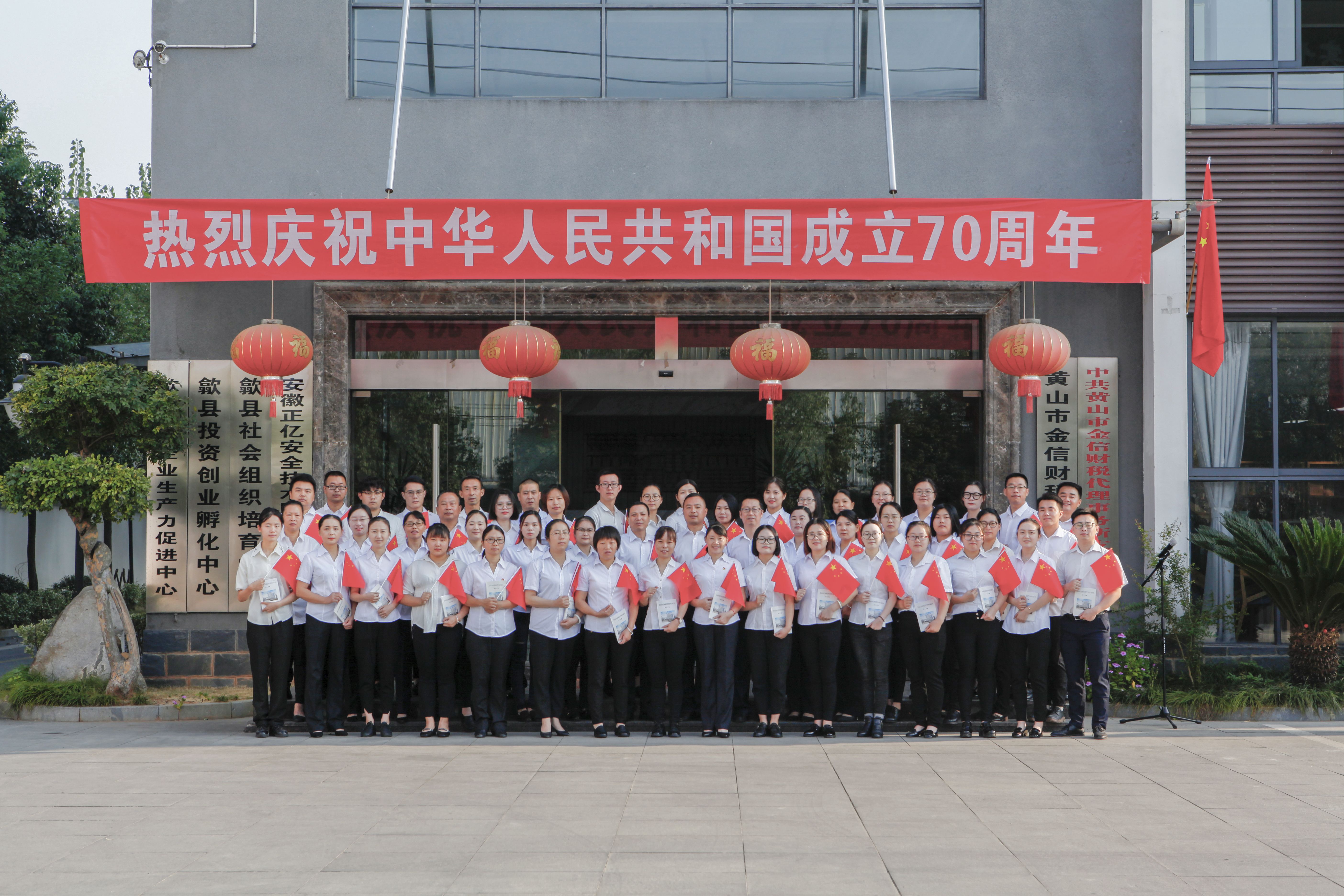 9月30日,我公司在辦公大樓前隆重舉行慶祝中華人民共和國成立70周年升國旗儀式。公司總經(jīng)理胡海鋒、副總經(jīng)理汪銘及全體員工54人參加升旗儀式。公司項(xiàng)目發(fā)展部經(jīng)理方志義主持升國旗儀式。