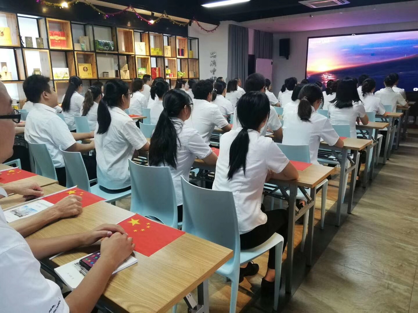 2019年9月30日8時許,我公司全體員工在參加升國旗、唱國歌活動后,齊聚在公司一樓眾創(chuàng)空間,集中觀看愛國主義震撼視頻短片《中國奮斗史》。