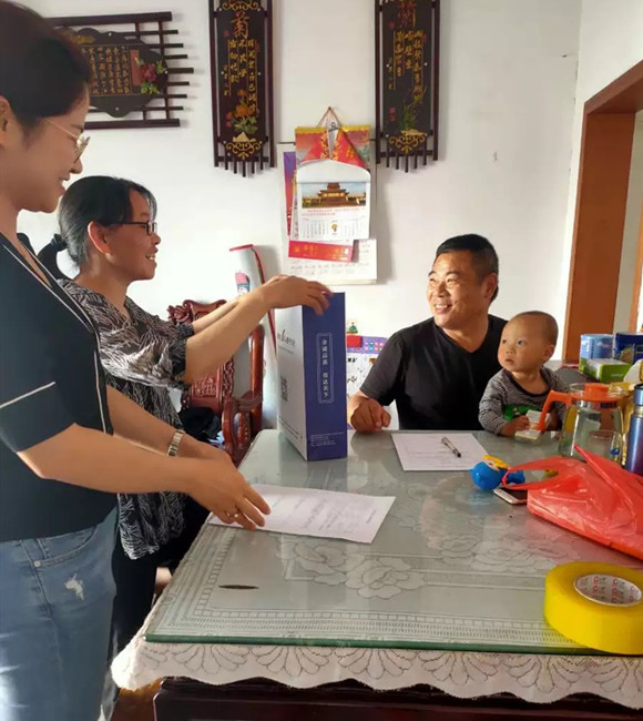 [上圖為上圖為財(cái)稅部李霞娟經(jīng)理走訪(fǎng)黃山權(quán)敢勞務(wù)有限公司經(jīng)理王連生并送上感恩禮包。]