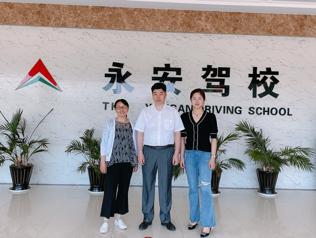 [上圖為財(cái)稅部李霞娟經(jīng)理(左)、會(huì)計(jì)杜思惠(右)與走訪(fǎng)對(duì)象——永安駕??偨?jīng)理許美良(中)合影。]