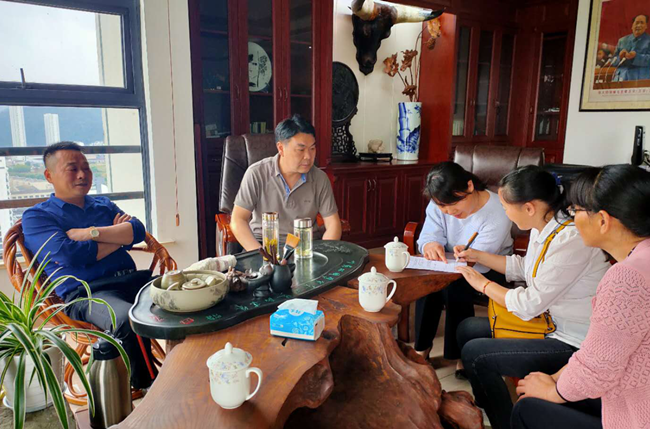 (上圖為走訪(fǎng)小組仔細(xì)聆聽(tīng)昱聯(lián)爆破公司提出的意見(jiàn)和建議。)