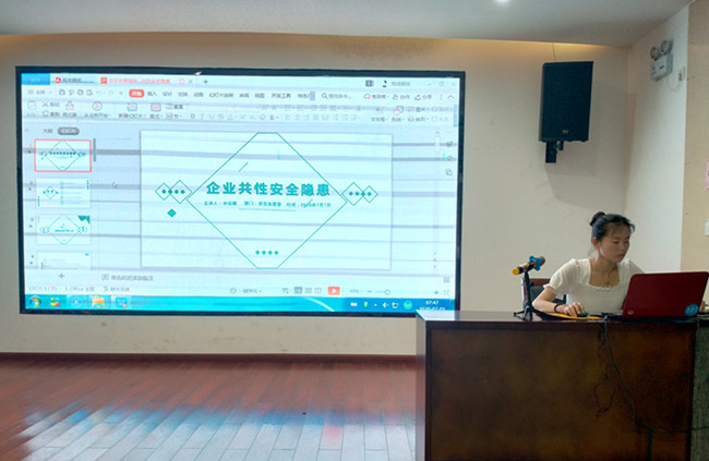 2020年7月1日,由項目發(fā)展部徐佳敏主講的“企業(yè)安全基礎(chǔ)知識”專題PPT分享在公司一樓眾創(chuàng)空間舉行,園區(qū)企業(yè)負責人和中心財稅服務(wù)人員40余人參與此次分享。