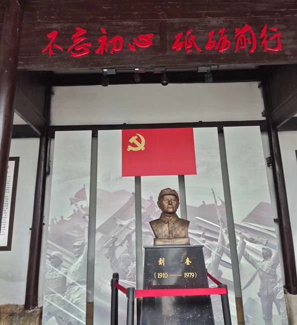 當(dāng)日,在巖源村,支部黨員與積極分子認(rèn)真聆聽鄉(xiāng)、村干部對革命年代艱苦歲月、浴血奮戰(zhàn)事跡的深情回憶和真實(shí)描述,并參觀巖源革命歷史陳列館,瞻仰新四軍游擊隊隊長劉奎雕像。