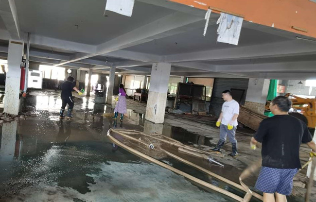 (圖為招商中心、金信財(cái)稅員工支援開發(fā)區(qū)名倫五金公司淤泥清掃。)