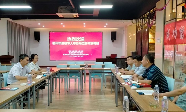8月19日,浙江省衢州市退役軍人事務局副局長藍紅星一行來我縣調(diào)研退役軍人退役安置、就業(yè)培訓等方面工作。黃山市退役軍人事務局副局朱樂華、縣退役軍人事務局副局長潘煉等陪同調(diào)研。我歙縣退役軍人創(chuàng)業(yè)孵化和就業(yè)促進基地負責人胡海鋒全程參與。