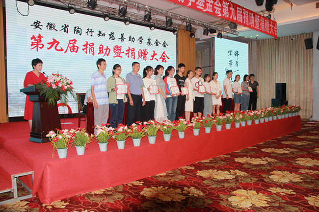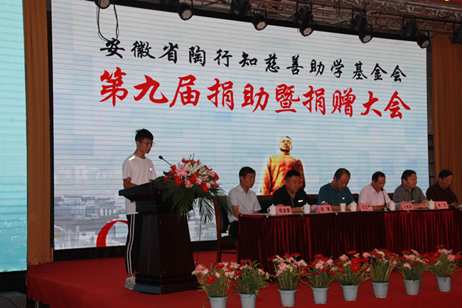2020年9月11日,安徽省陶行知慈善助學(xué)基金會第九屆捐助暨捐贈大會在歙縣飯店隆重舉行。縣委副書記、組織部長劉文及陶行知基金會全體理事、愛心捐贈人士、受助學(xué)生共200多人參加會議。當(dāng)日,共向應(yīng)屆和歷屆大學(xué)生149位捐助愛心款項近55萬元。同時,又收到社會各界的愛心捐助18萬余元。
