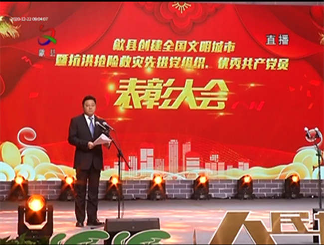 (縣委副書記、縣長吳旭光宣讀表彰決定)
