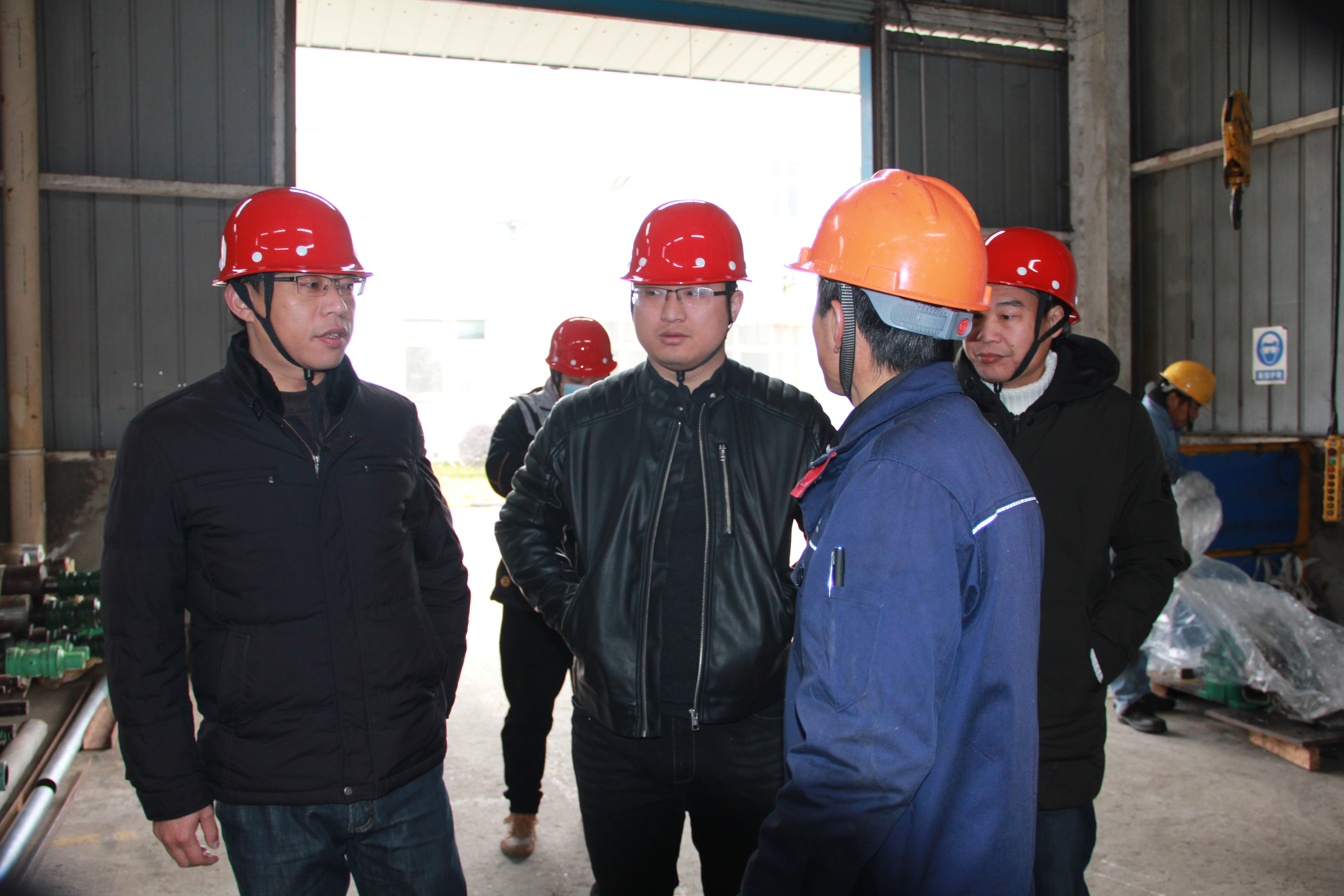 (上圖為富堨鎮(zhèn)政府副鎮(zhèn)長朱超(中)帶隊(duì)在華邦公司車間檢查。)
