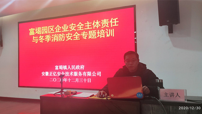 2020年12月30日,以“企業(yè)安全主體責(zé)任與冬季消防安全”為主題的富堨園區(qū)企業(yè)安全生產(chǎn)管理培訓(xùn)在歙縣招商投資服務(wù)中心順利舉行。培訓(xùn)由我中心下屬機(jī)構(gòu)——安徽正億安全技術(shù)服務(wù)有限公司注冊安全工程師吳智勇主講,富堨園區(qū)21家重點(diǎn)企業(yè)的負(fù)責(zé)人或車間主任、安全員等20余人參加培訓(xùn)。