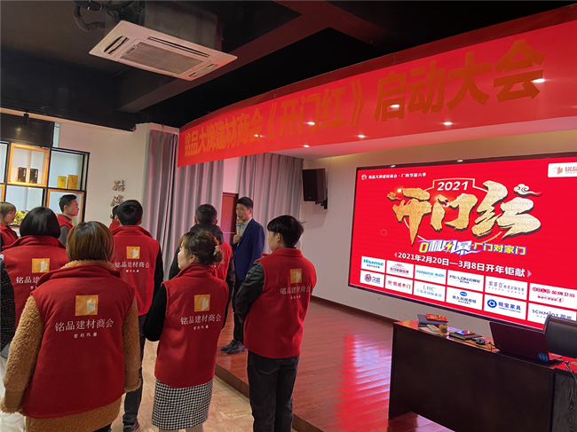 新年伊始,萬象更新。加油鼓勁,再創(chuàng)輝煌!2021年2月20日,銘品大牌建材商會開展的《開門紅》專題培訓大會在歙縣青創(chuàng)眾創(chuàng)空間順利舉辦,來自銘品商會的40余名營銷人員到場參訓。