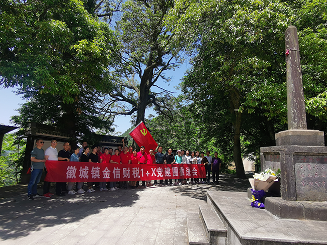 當日,黨員隊伍從歙縣出發(fā),經(jīng)過一個小時的盤山公路到達杞梓里鎮(zhèn)金竹村。在革命烈士紀念碑前,當?shù)卮彘L深情講述了烈士紀念碑下九名烈士的英勇事跡,在場黨員聽后被斗爭年代黨員無私奉獻、不惜犧牲生命的精神所感動,也深感今日幸福生活來之不易。
