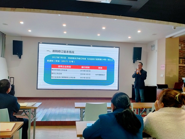 此次培訓(xùn)由中心副主任汪銘主講,汪銘副主任是注冊(cè)會(huì)計(jì)師、注冊(cè)稅務(wù)師、管理會(huì)計(jì)師,具有扎實(shí)的理論功底和豐富的實(shí)操經(jīng)驗(yàn)。培訓(xùn)前,他多方面收集、學(xué)習(xí)關(guān)于此次培訓(xùn)的資料,為培訓(xùn)的順利開展做好充分準(zhǔn)備。當(dāng)日,汪銘副主任結(jié)合多年的業(yè)務(wù)實(shí)踐與經(jīng)驗(yàn),從收入的定義、確認(rèn)、計(jì)量,合同成本、相關(guān)會(huì)計(jì)科目及會(huì)計(jì)處理等方面進(jìn)行詳細(xì)講解。由于此文件是所有財(cái)稅人員學(xué)習(xí)的難點(diǎn),培訓(xùn)中汪銘副主任采用通俗易懂的詞匯向參訓(xùn)者解讀,同時(shí)緊密結(jié)合實(shí)際案例予以分析闡述,并與大家進(jìn)行互動(dòng)和討論,授課生動(dòng),讓參訓(xùn)人員受益匪淺。