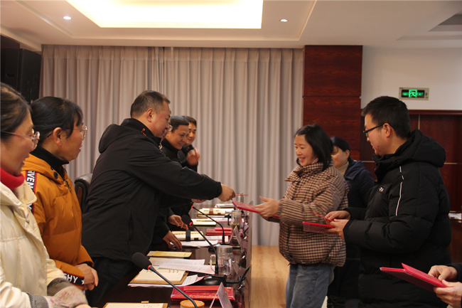(上圖為中心領導為2021年度優(yōu)秀班組、個人頒獎。)