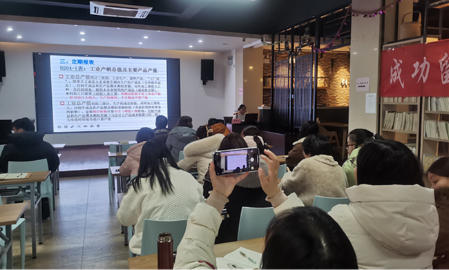 為進一步做好2021規(guī)上企業(yè)統(tǒng)計年報工作,2月22日,我中心邀請縣統(tǒng)計局專業(yè)干部就此項工作進行專題培訓(xùn),涉及規(guī)上企業(yè)會計40余人參加培訓(xùn)會??h統(tǒng)計局副局長吳文輝、縣科技商務(wù)經(jīng)濟信息化局副局長胡志堅受邀參會并作指導(dǎo)性講話。