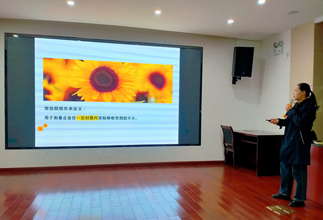 胡曉紅副經(jīng)理是一名中級會計師,在財稅代理方面有著豐富的工作經(jīng)驗,平日工作認真負責(zé)。此次分享她主要圍繞“增值稅稅負率的測算”這一主題,從增值稅稅負率的定義、名義稅負及實際稅負的測算,并結(jié)合實際例題進行分析講解。經(jīng)過胡曉紅的用心介紹,使得參與人員對“增值稅稅負率”有了更全面、深入的了解,為財稅人員在今后的稅收數(shù)據(jù)把控上提供了有效的幫助,促進更好的為企業(yè)做好謀劃、提供服務(wù)。
