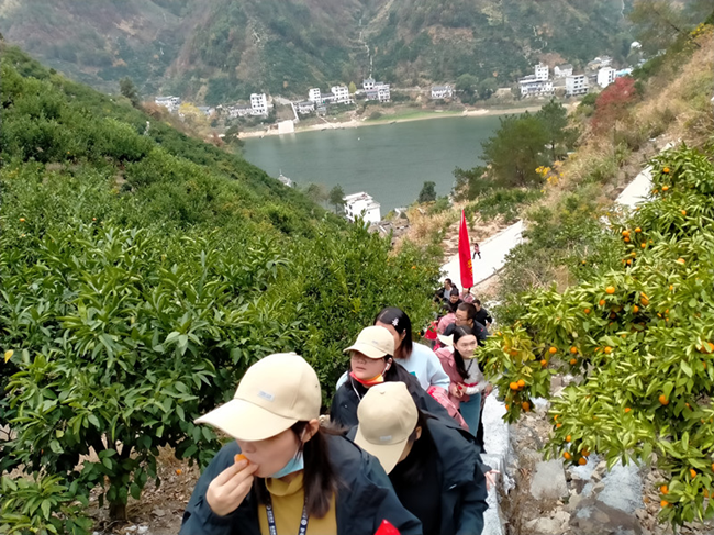 隨后團(tuán)隊返回我縣新溪口,品嘗農(nóng)家樂,沿著登山步道欣賞新安江畔的桔園秋色,品嘗最新鮮的蜜桔酸甜味道。看到碩果累累的圖景,也讓我們不禁想到桔農(nóng)養(yǎng)護(hù)、灌溉的辛苦,艱辛的付出才換來如今的收獲。