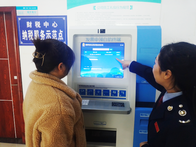 “現(xiàn)在公司有了自助領(lǐng)票終端,領(lǐng)發(fā)票就像在ATM機(jī)上取錢一樣簡(jiǎn)單方便,再也不用去稅務(wù)辦稅大廳排隊(duì)了。”2月10日,在歙縣富堨經(jīng)濟(jì)園區(qū)——黃山市金信財(cái)稅代理事務(wù)所有限公司內(nèi),一臺(tái)發(fā)票申領(lǐng)自助終端順利通過(guò)網(wǎng)絡(luò)調(diào)試。公司財(cái)務(wù)會(huì)計(jì)張捷在歙縣稅務(wù)局工作人員的示范引導(dǎo)下,以代理企業(yè)黃山市一家人豆業(yè)有限公司的身份快捷領(lǐng)出增值稅發(fā)票20份。整個(gè)領(lǐng)取過(guò)程從辦稅人微信實(shí)名掃碼到選擇單位、到發(fā)票領(lǐng)用,僅用了3分鐘,方便省時(shí)又高效。