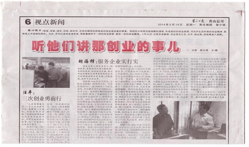 轉(zhuǎn)載2014年5月19日黃山日?qǐng)?bào)(晨刊)文章: